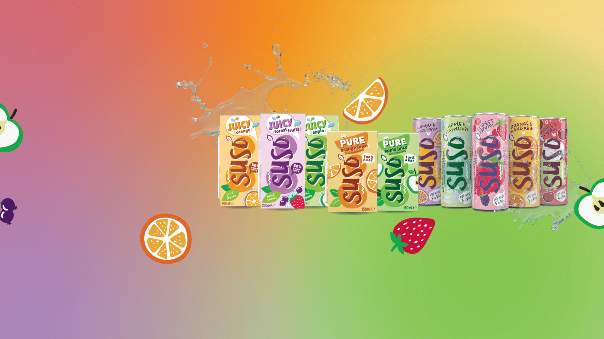 Our SUSO Juicy Portions range is made up of Forest Fruits, Apple and Orange flavoured juice drinks, which contain no added sugar or artificial sweeteners. Available in a 200ml format, they’re perfectly nutritious refreshments that are bursting with natural flavours.