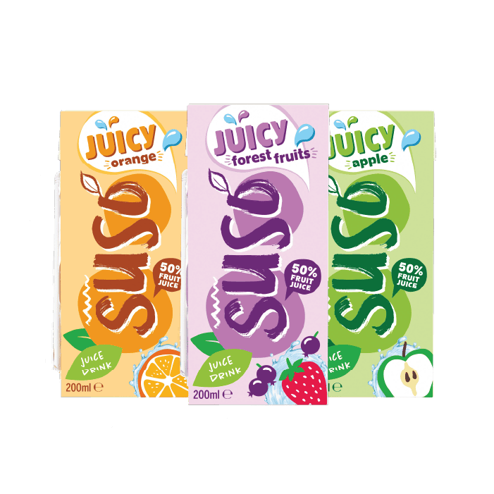 Our SUSO Juicy Portions range is made up of Forest Fruits, Apple and Orange flavoured juice drinks, which contain no added sugar or artificial sweeteners. Available in a 200ml format, they’re perfectly nutritious refreshments that are bursting with natural flavours.
